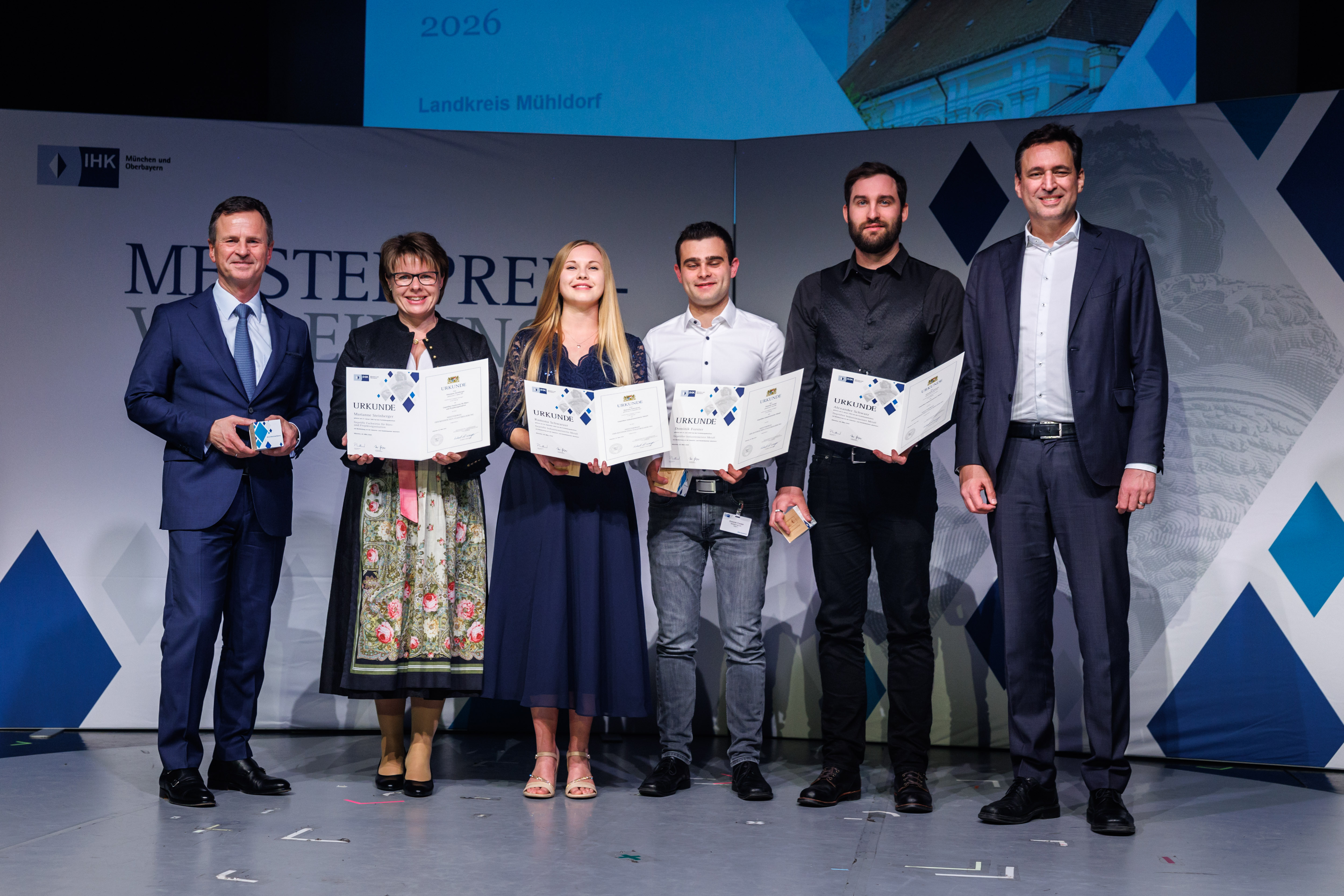 Der Bayerische Staatsminister für Justiz Georg Eisenreich (CSU), und Manfred Gößl, Hauptgeschäftsführer der IHK für München und Oberbayern, gratulierten herzlich. Gößl betonte: „Sie haben mit Ihren Leistungen eindrucksvoll gezeigt, wie erfolgreich berufliche Karrierewege sein können. Ihr Wissen und Können sind gefragter denn je. Als hochqualifizierte Fach- und Führungskräfte sichern Sie die Zukunftsfähigkeit der bayerischen Wirtschaft.“