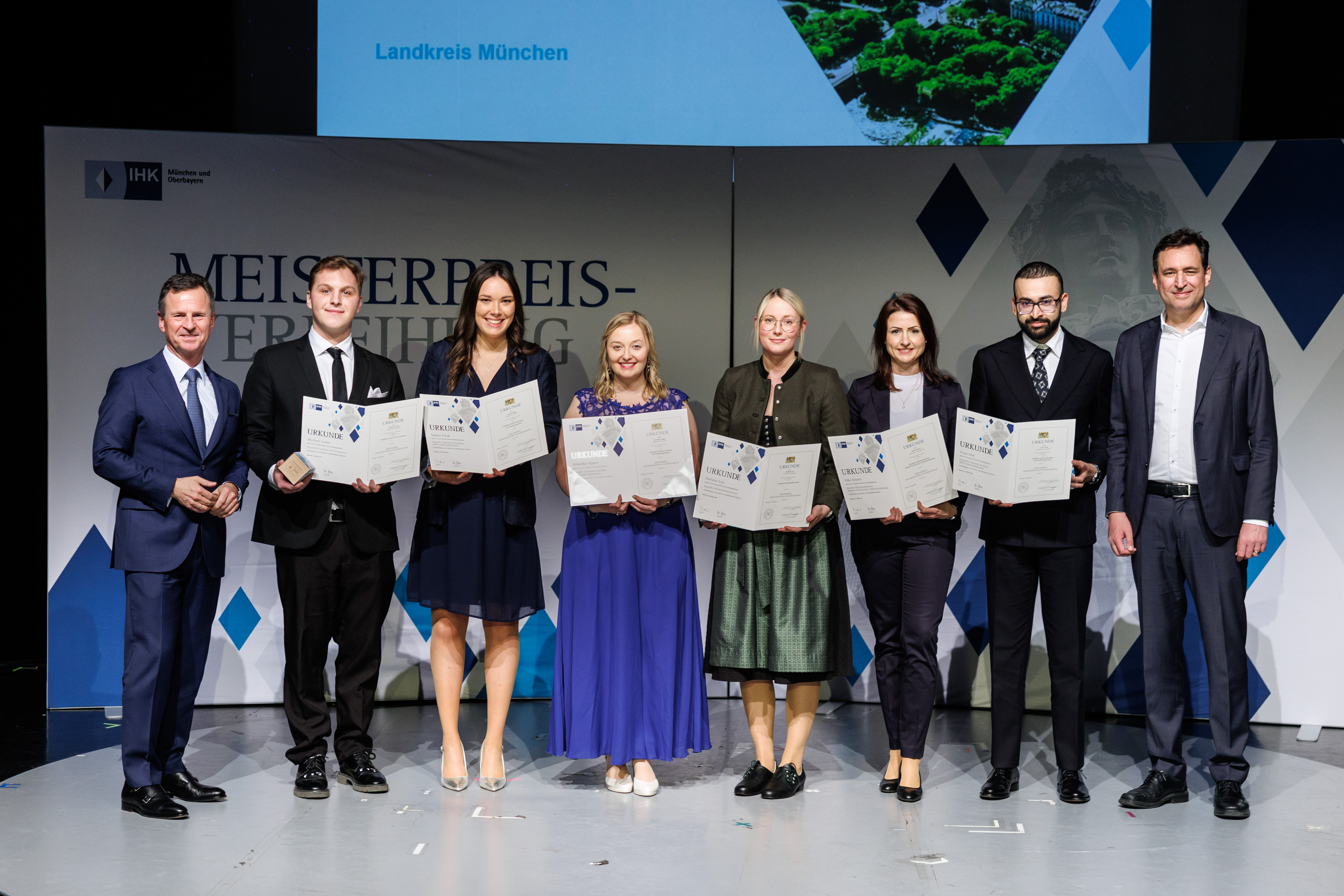 Der Bayerische Staatsminister für Justiz Georg Eisenreich (CSU), und Manfred Gößl, Hauptgeschäftsführer der IHK für München und Oberbayern, gratulierten herzlich. Gößl betonte: „Sie haben mit Ihren Leistungen eindrucksvoll gezeigt, wie erfolgreich berufliche Karrierewege sein können. Ihr Wissen und Können sind gefragter denn je. Als hochqualifizierte Fach- und Führungskräfte sichern Sie die Zukunftsfähigkeit der bayerischen Wirtschaft.“