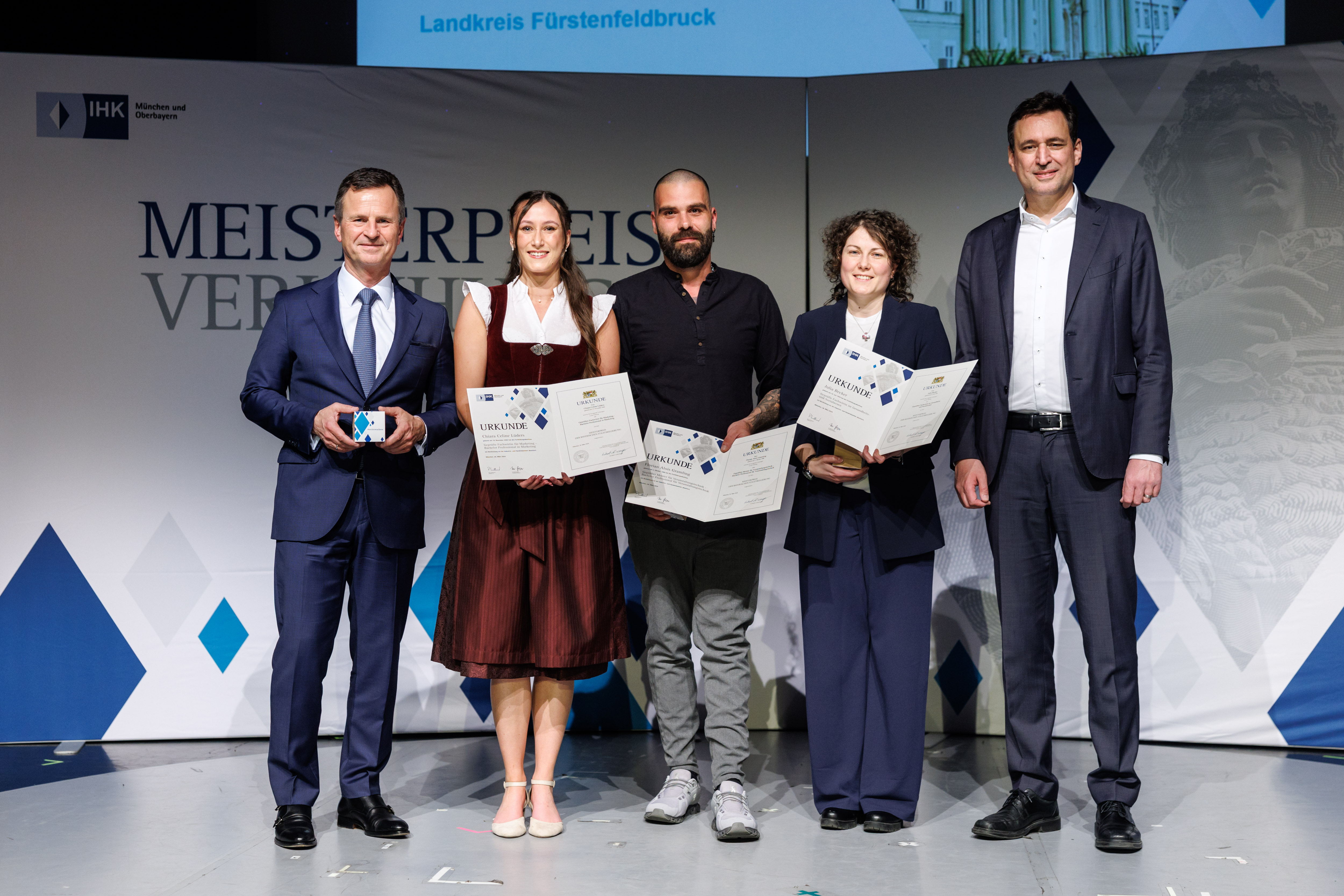 Der Bayerische Staatsminister für Justiz Georg Eisenreich (CSU), und Manfred Gößl, Hauptgeschäftsführer der IHK für München und Oberbayern, gratulierten herzlich. Gößl betonte: „Sie haben mit Ihren Leistungen eindrucksvoll gezeigt, wie erfolgreich berufliche Karrierewege sein können. Ihr Wissen und Können sind gefragter denn je. Als hochqualifizierte Fach- und Führungskräfte sichern Sie die Zukunftsfähigkeit der bayerischen Wirtschaft.“