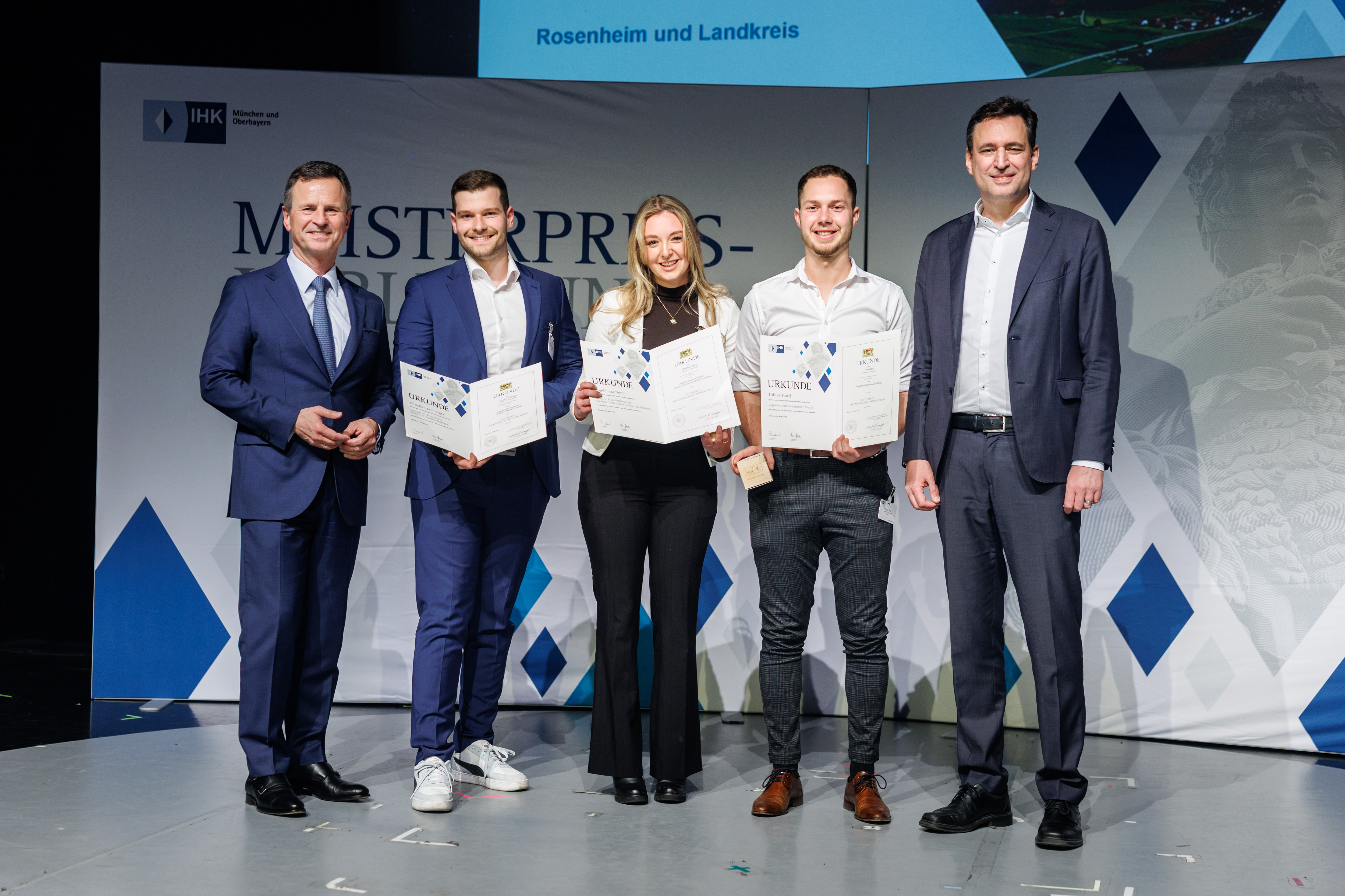 Der Bayerische Staatsminister für Justiz Georg Eisenreich (CSU), und Manfred Gößl, Hauptgeschäftsführer der IHK für München und Oberbayern, gratulierten herzlich. Gößl betonte: „Sie haben mit Ihren Leistungen eindrucksvoll gezeigt, wie erfolgreich berufliche Karrierewege sein können. Ihr Wissen und Können sind gefragter denn je. Als hochqualifizierte Fach- und Führungskräfte sichern Sie die Zukunftsfähigkeit der bayerischen Wirtschaft.“